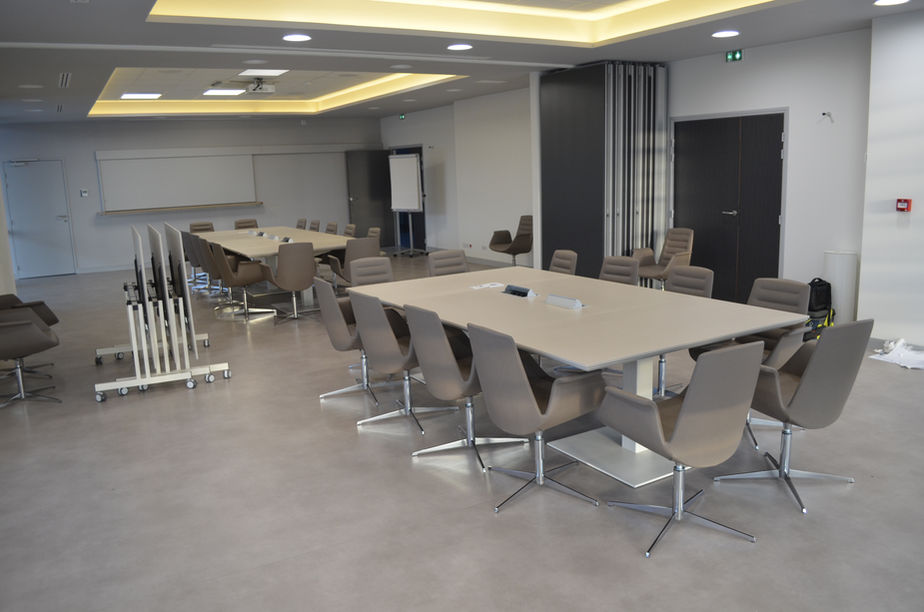Sapiac Office a été contacté afin de créer un espace de réunion de grande envergure. Les contraintes sur ce projet étaient qu'il fallait pouvoir accueillir une trentaine de personne ainsi que des équipements numériques connectés.