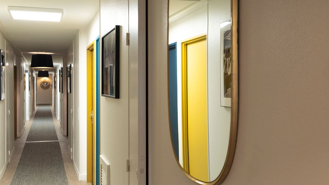 Aménagement d'une résidence étudiante. Accueil, chambres, couloirs, rooftop, Sapiac Office a remodernisé toute la résidence du sol au plafond afin de créer des espaces agréables à vivre tout au long de l'année.